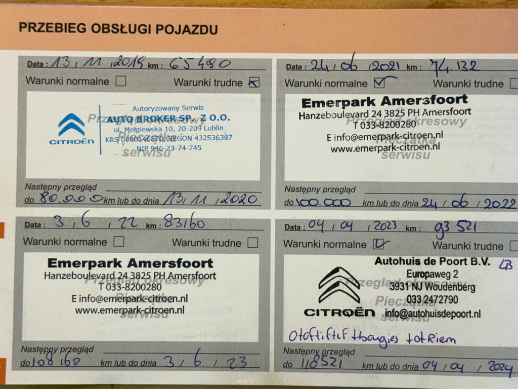 - Onderhoudsboekje aanwezig?
