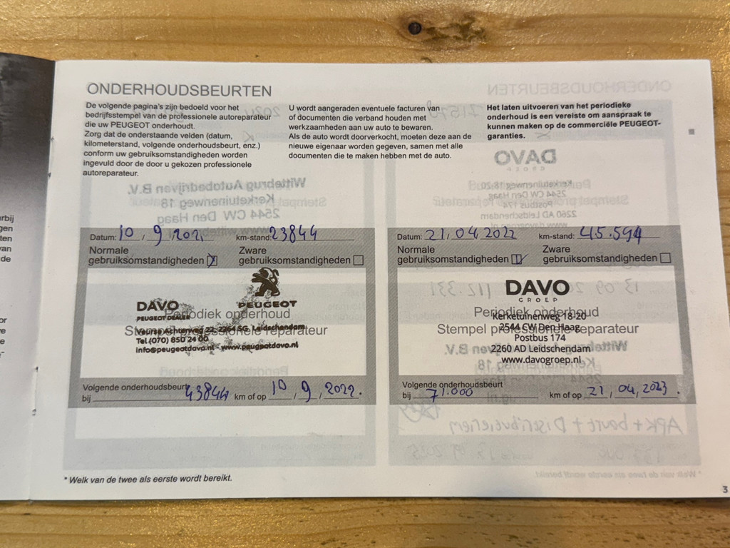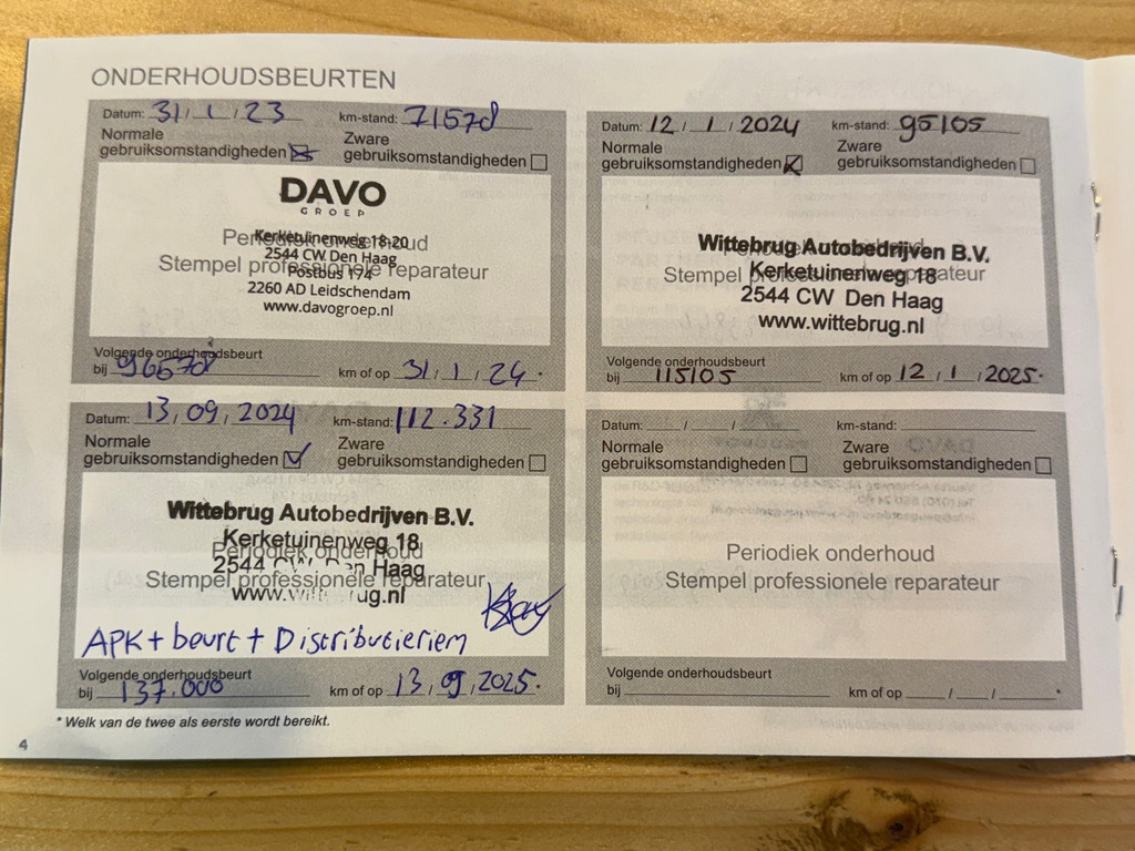 - Onderhoudsboekje aanwezig?