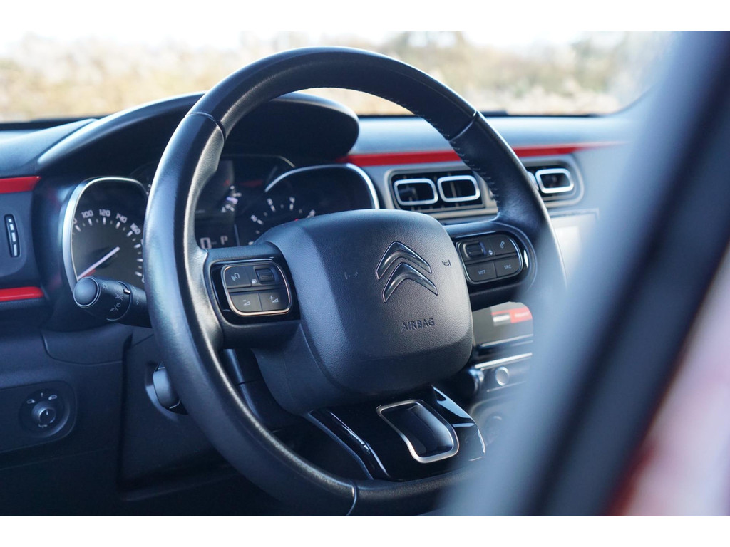 Altijd achter zicht, nooit meer nekkramp! De achteruitrijcamera maakt het supermakkelijk. Een veiligheidsverhogende optie is de ingebouwde spraakbediening. Terwijl u uw ogen op de weg houdt, bedient u de auto met uw stem. In het zeldzame geval van een storing weet u nog eerder dan de monteur wat er mankeert. Uw smartphone met remote services geeft direct inzicht. Op een drukke weg heeft u soms ogen in uw achterhoofd nodig. De sensoren aan de achterzijde nemen die functie over en geven een achteropkomend verkeer waarschuwing als een achterligger te dicht op u zit. In een auto als deze kunt u niet zonder automatische airconditioning, zodat de temperatuur altijd goed is. De uitrusting van deze Citroen is met regensensor, cruise control, keyless entry, automatisch dimmende binnenspiegel, lederen stuur en centrale deurvergrendeling met afstandsbediening behoorlijk compleet.