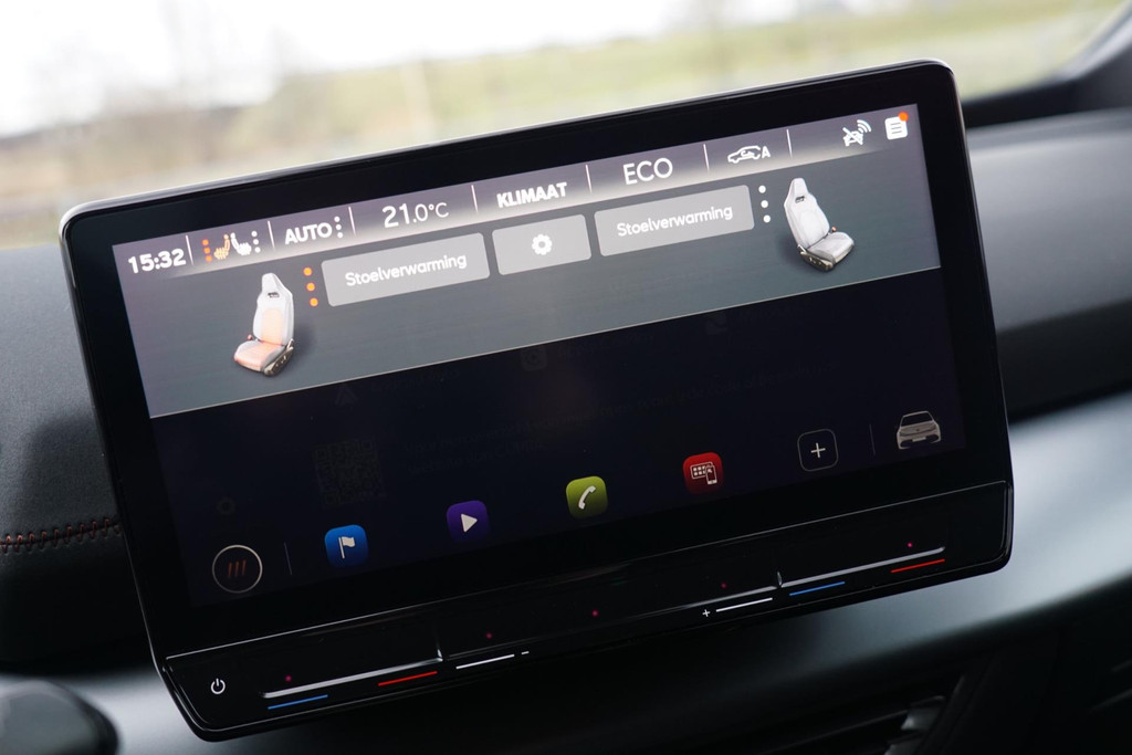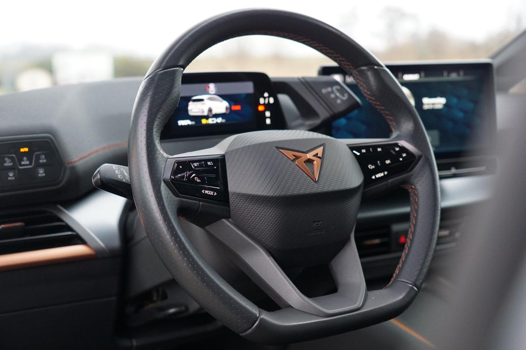Deze auto nodigt u uit om plaats te nemen achter het sportstuur en onmiddellijk de weg op te gaan. Bestuurder en bijrijder krijgen een warm welkom: deze Cupra Born is voorzien van verwarmbare voorstoelen. Stevig ondersteund door de sportstoelen blijft u bij elke beweging op uw plek. Fijn plusje, zeker in de kille dagen, is het verwarmd stuurwiel. Bij de zeer complete uitrusting van deze auto behoren ook LED koplampen, sportonderstel, extra getint glas, in delen neerklapbare achterbank, LED-achterlichten en verwarmde ruitensproeiers.