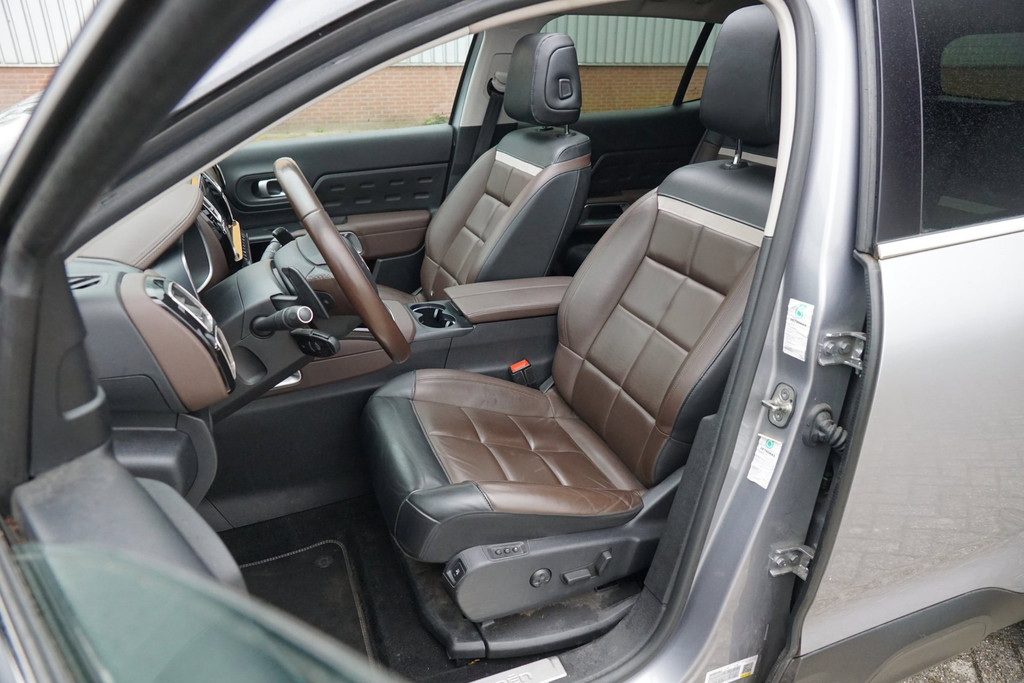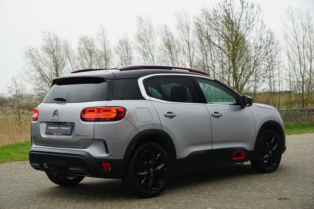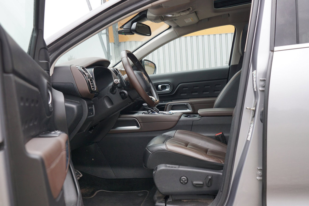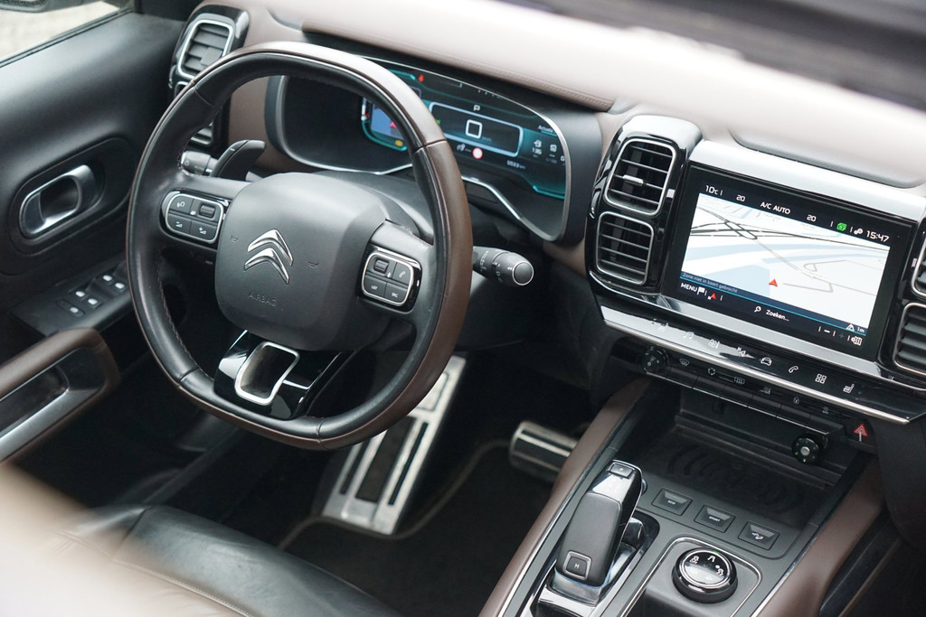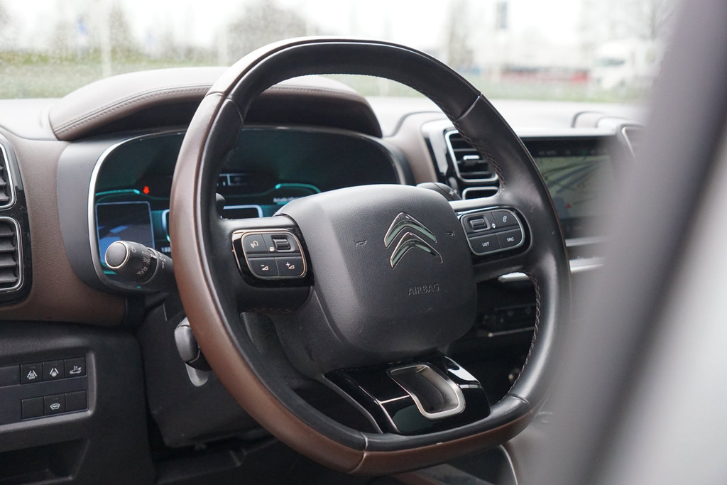 Met een auto als deze Citroen C5 Aircross komt u absoluut goed voor de dag. De aandrijving van deze Citroen wordt verzorgd door een driecilinder motor en een automatische transmissie. Een eyecatcher is het lederen interieur. Maar onderschat ook het voordeel van een aantal 'kleine' details niet, zoals het elektrisch bediende glazen panorama dak en de elektrisch bedienbare achterklep. De verwarmbare voorstoelen zijn voorzien van een massagefunctie, een weldaad voor rug en schouders in elk seizoen. Ontspannen rijden in een optimale zithouding: daarvoor zorgen de comfortstoelen. U wordt in deze auto ook getrakteerd op LED koplampen, halflederen bekleding, geluidsisolerende ramen, verstelbare lendensteunen, verschuifbare achterbank en snelheidsafhankelijke stuurbekrachtiging.