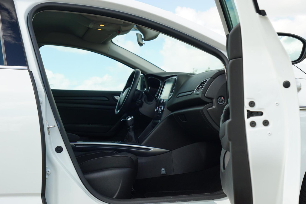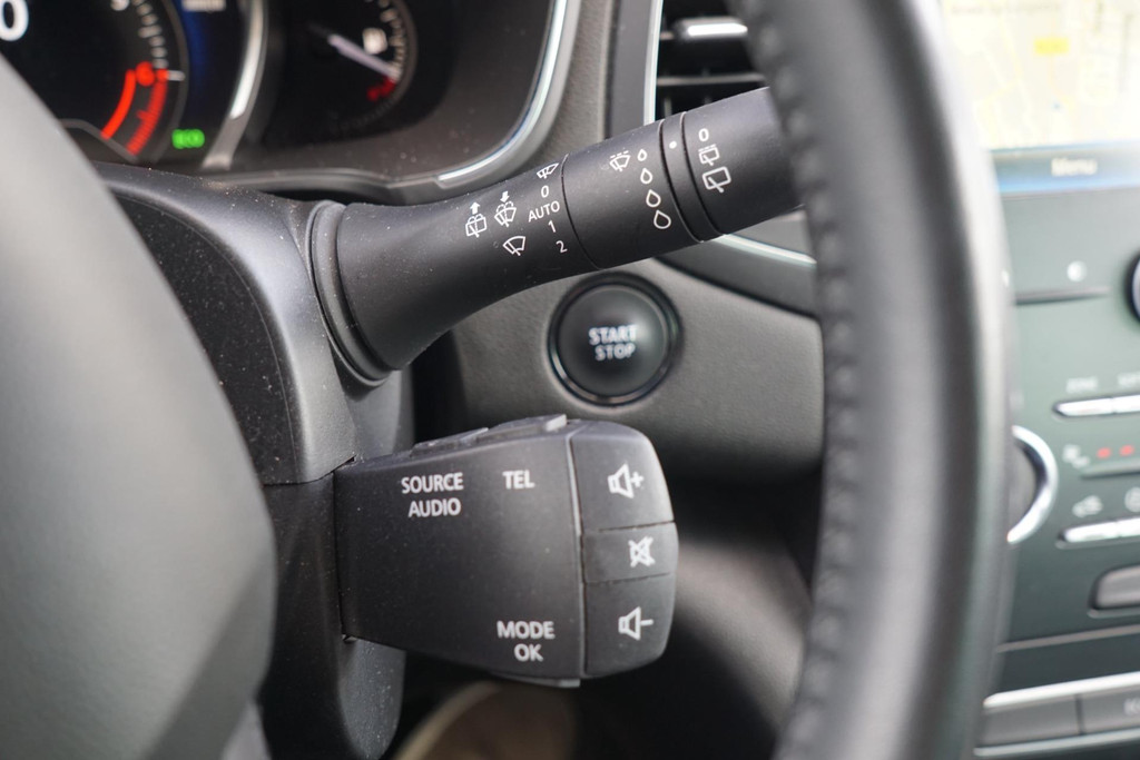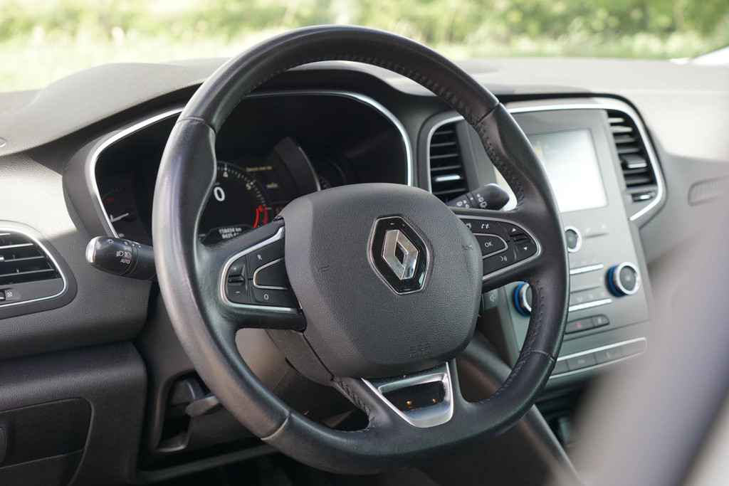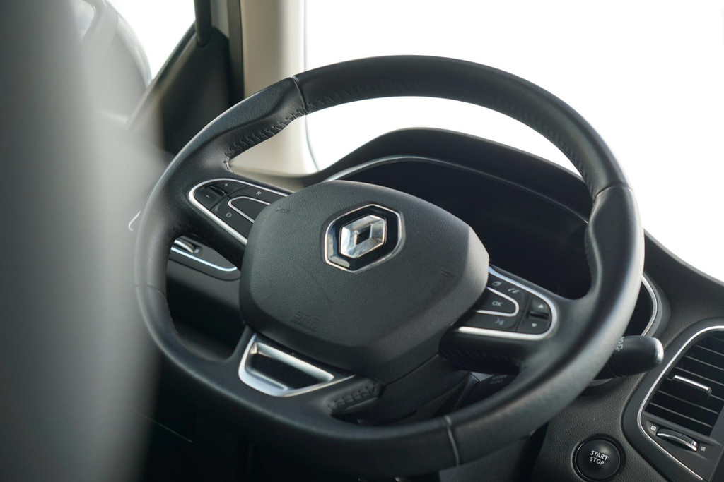 De bediening van het audiosysteem en het navigatiesysteem gebeurt met knoppen op het stuur. De audio is overigens voorzien van DAB-radio voor een altijd heldere ontvangst. Met de automatische airconditioning selecteert u de gewenste temperatuur. Het systeem doet de rest. Liever gepiep dan gekraak? Dan zult u blij zijn met de aanwezige parkeersensoren! Natuurlijk is een complete auto als deze ook voorzien van sensoren die de omgeving in de gaten houden. Deze Renault heeft niet alleen een automatisch inschakelbare verlichting aan boord, maar ook een regensensor. Cruise control houdt automatisch de ingestelde snelheid vast. Zo kunt u zich volledig op het verkeer concentreren. En dan is deze auto ook nog eens voorzien van keyless entry, lederen stuur en boordcomputer.