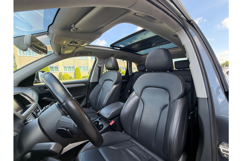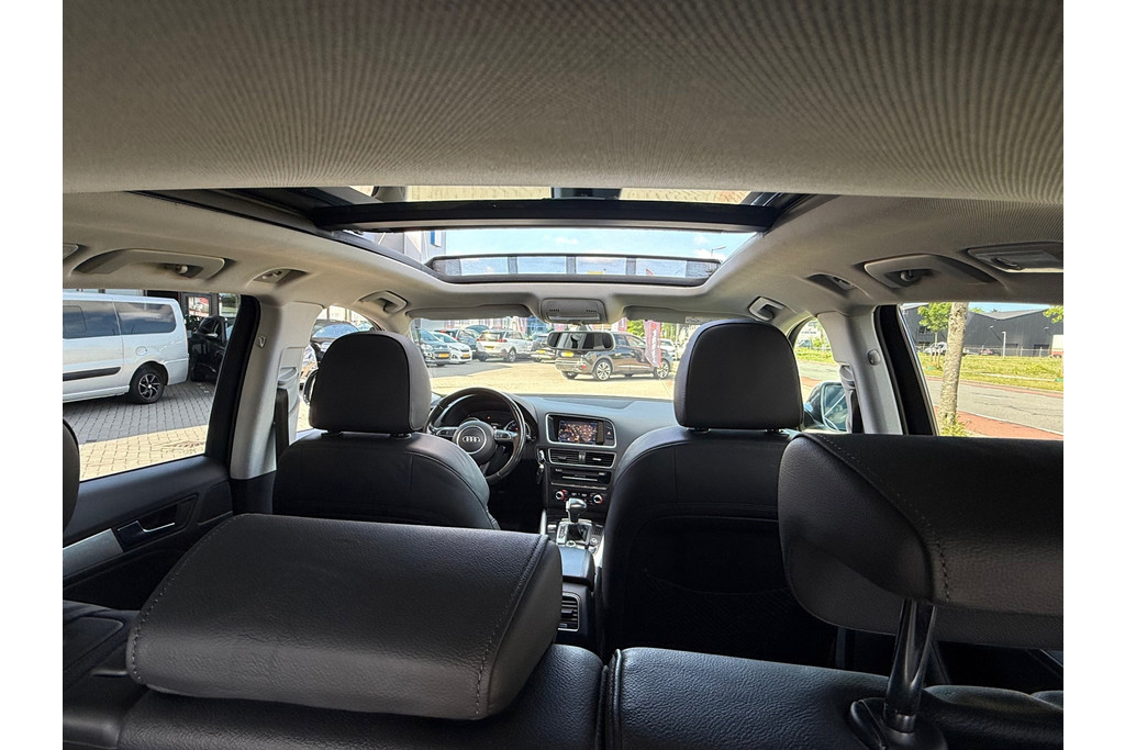 Als u gaat voor kwaliteit zonder compromis, dan is deze Audi Q5 een auto voor u. Een krachtige motor geeft deze auto zijn sportieve prestaties. Aan gemak én ruimte is uitstekend gedacht: een elektrisch bediend glazen panorama dak en een elektrisch bedienbare achterklep. En dan krijgt u het mooie lederen interieur er ook nog eens bij! Kou en regen maken geen indruk. Binnen zit u comfortabel dankzij de stoelverwarming. Met de krachtige xenonverlichting rijdt u ontspannen in het donker. In deze auto profiteert u onder andere ook van: 19 inch lichtmetalen velgen, warmtewerend glas, in delen neerklapbare achterbank, verstelbare lendensteunen en verwarmde ruitensproeiers.