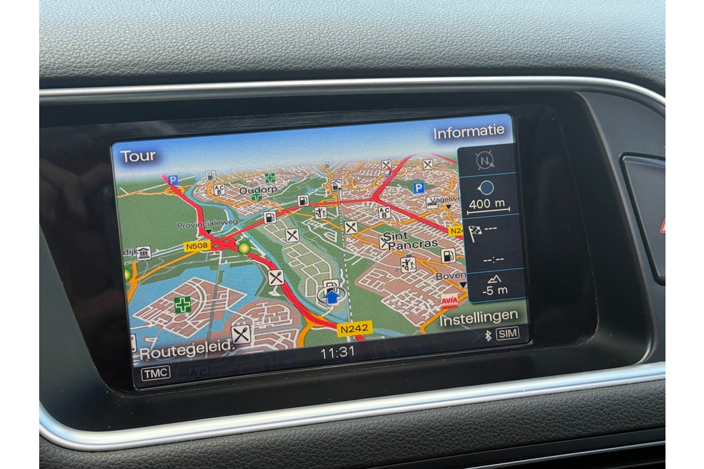 Deze Audi is voorzien van knoppen op het stuur om het navigatiesysteem met harde schijf en het audio-installatiesysteem te bedienen. De automatische airconditioning zorgt voor een behaaglijk klimaat in de auto. Geen parkeervak is te klein dankzij de assistentie van de parkeersensoren. Het drukke verkeer eist onderweg al uw aandacht op. Daarom is het goed dat deze Audi is voorzien van diverse systemen die u assisteren tijdens de rit. Een automatisch inschakelbare verlichting neemt het waar als het donker wordt of gaat schemeren, en schakelt dan automatisch de verlichting in. Op dezelfde manier "ziet" de regensensor de eerste spatjes regen en schakelt dan de ruitenwissers in, en als het harder gaat regenen zet hij de ruitenwissers ook in een snellere stand. Op een rustige weg komt de cruise control helemaal tot z'n recht. Natuurlijk behoren automatisch dimmende binnenspiegel, lederen stuur en centrale deurvergrendeling met afstandsbediening ook tot de uitrusting van deze complete auto.