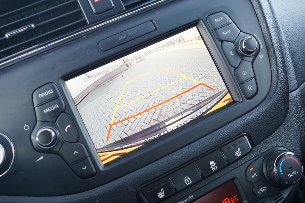 Nekkramp en verdraaide schouders zijn verleden tijd. Door de achteruitrijcamera is iedere meter achter de auto glashelder in beeld. Tot de standaard uitrusting van deze auto hoort ook electronic climate control. De elektronische systemen in deze Kia helpen u actief om comfortabeler te rijden. Een automatisch inschakelbare verlichting en een regensensor houden de omstandigheden onderweg in de gaten. Altijd uw handen vrij om deuren of bagageklep te openen, dankzij de keyless entry. Met navigatiesysteem, DAB ontvangst, automatisch dimmende binnenspiegel, centrale deurvergrendeling met afstandsbediening en lederen versnellingspook is deze Kia helemaal compleet.