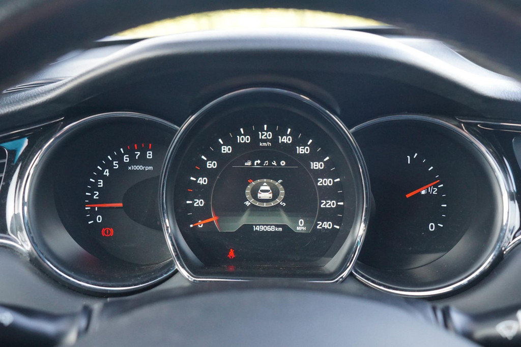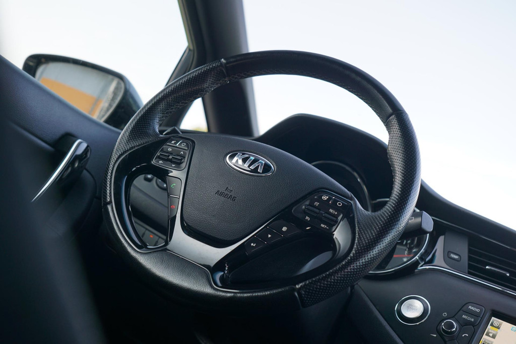 Nekkramp en verdraaide schouders zijn verleden tijd. Door de achteruitrijcamera is iedere meter achter de auto glashelder in beeld. Tot de standaard uitrusting van deze auto hoort ook electronic climate control. De elektronische systemen in deze Kia helpen u actief om comfortabeler te rijden. Een automatisch inschakelbare verlichting en een regensensor houden de omstandigheden onderweg in de gaten. Altijd uw handen vrij om deuren of bagageklep te openen, dankzij de keyless entry. Met navigatiesysteem, DAB ontvangst, automatisch dimmende binnenspiegel, centrale deurvergrendeling met afstandsbediening en lederen versnellingspook is deze Kia helemaal compleet.