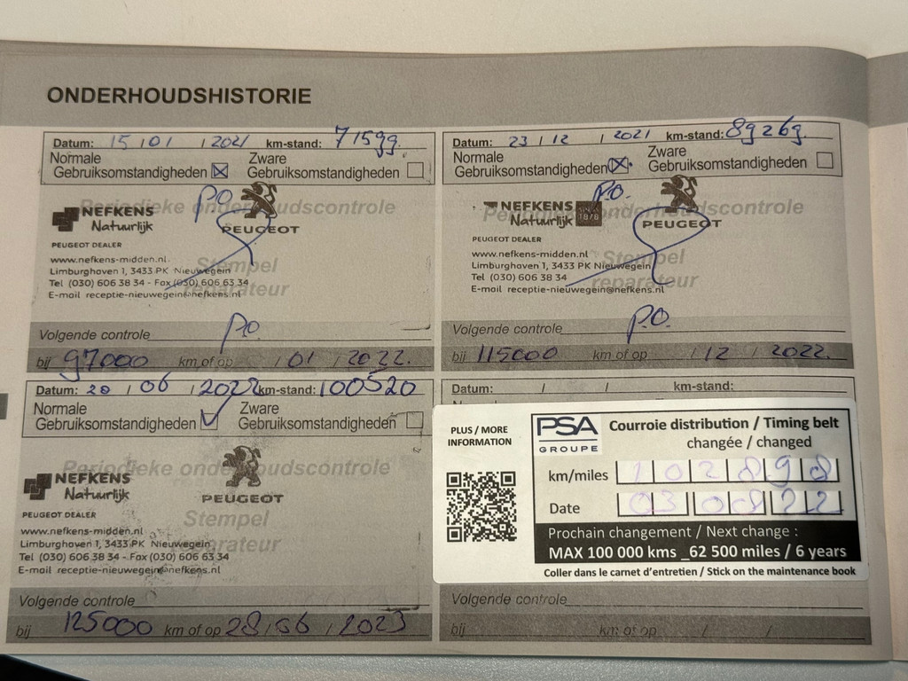 - Onderhoudsboekje aanwezig?