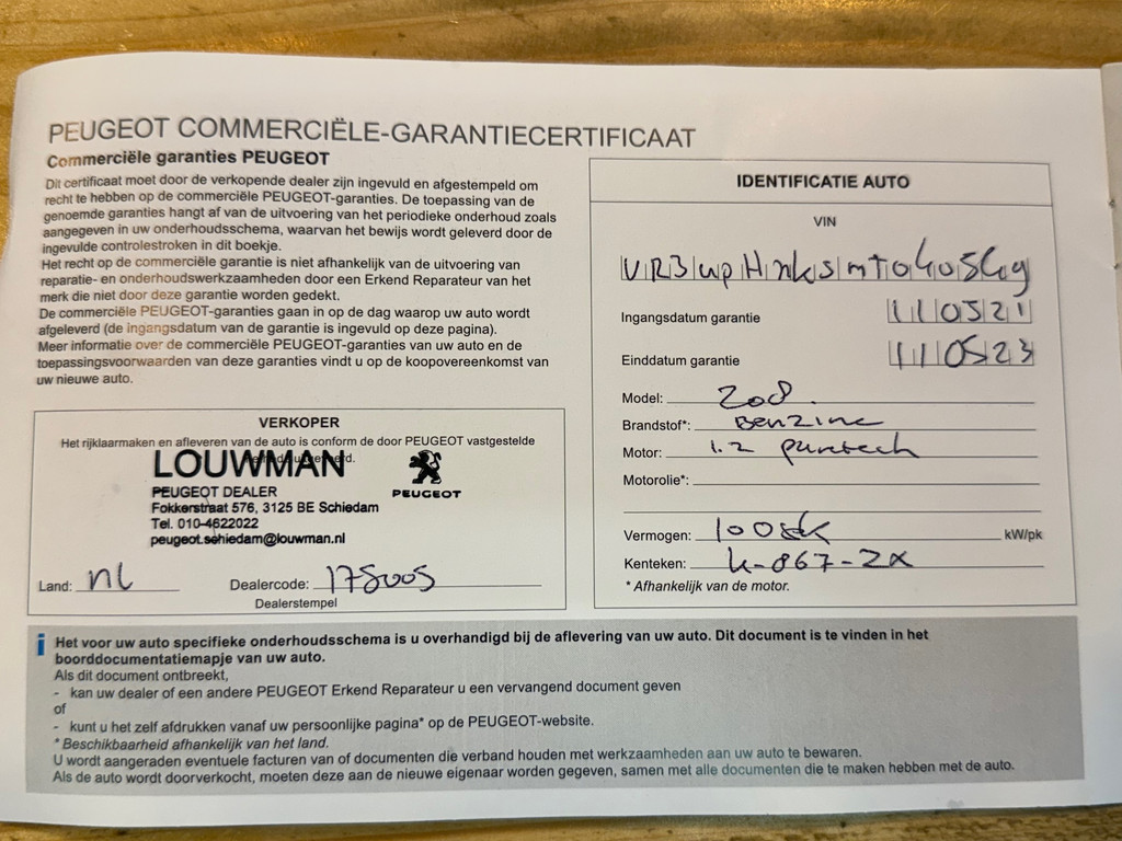 - Onderhoudsboekje aanwezig?