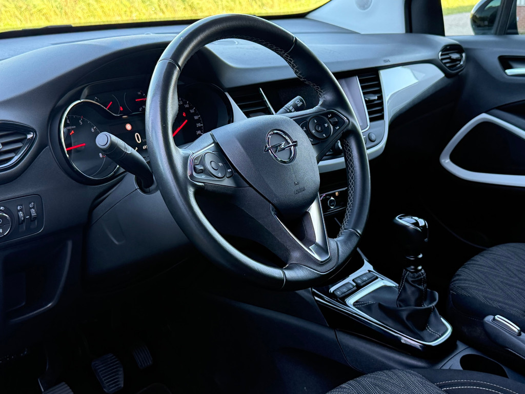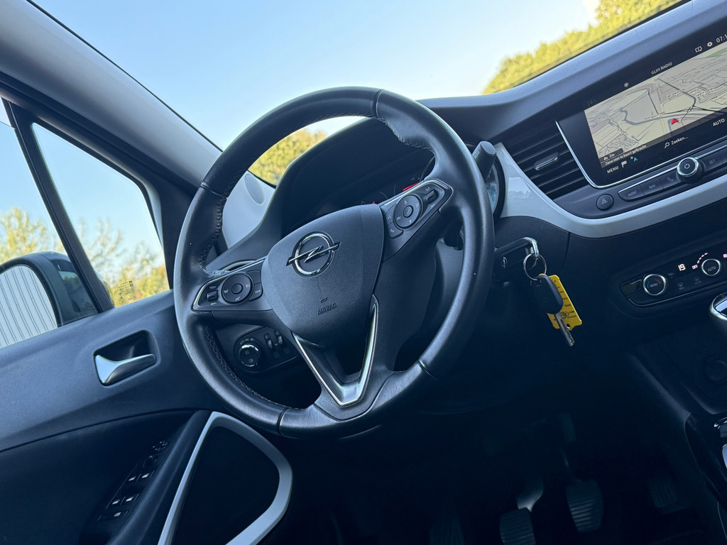 Kom maar, kom maar, kom maar... ho! Prettig hoor, zo'n achteruitrijcamera. Naast de routeinformatie van het navigatiesysteem kunt u muziek via het audiosysteem ook online beluisteren via bluetooth. Dankzij automatische airconditioning is het interieur behaaglijk warm of verfrissend koel. In deze Opel kunt u zich concentreren op het verkeer, terwijl de auto de omgeving voor u in de gaten houdt. Een automatisch inschakelbare verlichting zorgt dat de verlichting aangaat als het donkerder wordt - in tunnels bijvoorbeeld - en de regensensor schakelt de ruitenwissers in als het nodig is. U hoeft er niets aan te doen. Natuurlijk is deze Opel Crossland X voorzien van cruise control. Ook is de Opel uitgerust met: automatisch dimmende binnenspiegel, lederen stuur en centrale deurvergrendeling met afstandsbediening.