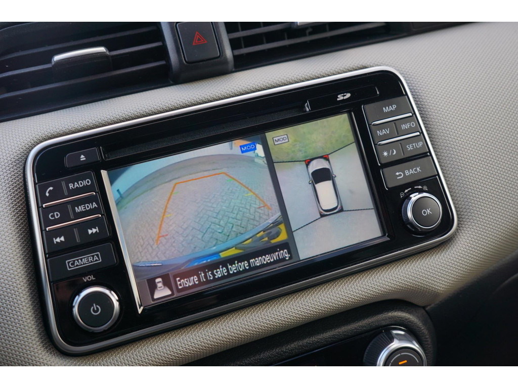 Zoals u mag verwachten van deze Nissan Micra is hij uitgerust met een reeks aan actieve veiligheidssystemen. In druk verkeer en onoverzichtelijke situaties helpt het accident avoidance system mee om een aanrijding te vermijden. Verder is deze auto uitgerust met hill hold functie, brake assist en bandenspanningcontrolesysteem.