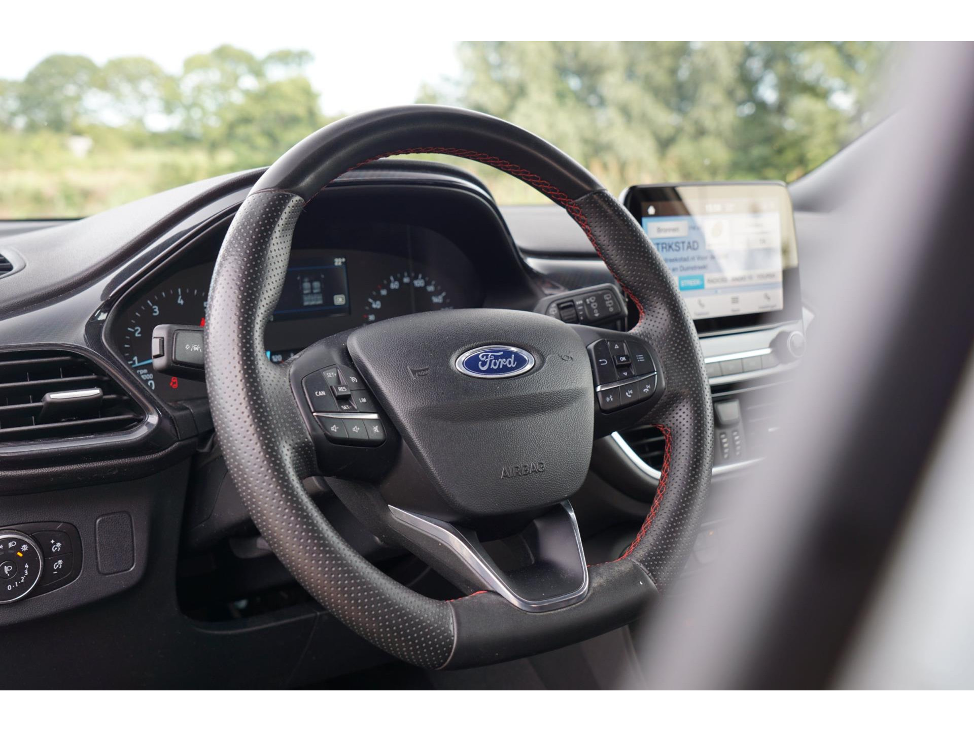Voor een goed en duidelijk overzicht onderweg is het digitale dashboard uitermate slim ingedeeld. Naast handmatige bediening kunt u belangrijke functies met uw stem bedienen dankzij de ingebouwde spraakbediening. Appen met uw auto? Geen probleem. U kunt van overal contact opnemen, de functies controleren en activeren. U bedient 'm met remote services. Een subliem geluidsspectrum wordt onder alle omstandigheden geleverd door het high performance audiosysteem. Beste route, verwachte aankomsttijd: uw eigen navigatiesysteem vertelt u alles! Ook is de Ford uitgerust met: DAB ontvangst, parkeersensoren achter, cruise control, sportstuurwiel, airconditioning en centrale deurvergrendeling met afstandsbediening.