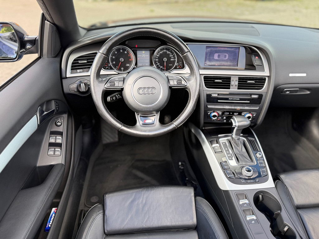 De sensatie van superieur geluid wordt geleverd door het high performance audiosysteem. Of het buiten nu warm is of koud, dankzij automatische airconditioning is het binnen altijd behaaglijk. Boem is ho? Niet bij deze Audi A5 Cabriolet. De piepjes van de parkeersensoren waarschuwen u op tijd voor obstakels. In deze Audi kunt u zich concentreren op het verkeer, terwijl de auto de omgeving voor u in de gaten houdt. Een automatisch inschakelbare verlichting zorgt dat de verlichting aangaat als het donkerder wordt - in tunnels bijvoorbeeld - en de regensensor schakelt de ruitenwissers in als het nodig is. U hoeft er niets aan te doen. Kleine ritjes, grote reizen - altijd een relaxte aankomst dankzij de cruise control. De Audi is standaard voorzien van: navigatiesysteem, multifunctioneel lederen stuur, centrale deurvergrendeling met afstandsbediening en boordcomputer.