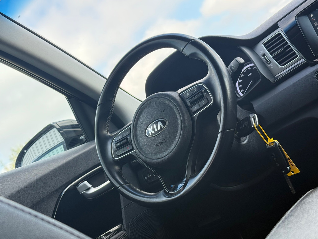 Onder alle omstandigheden perfect zicht op wat zich achter de auto afspeelt: de achteruitrijcamera zorgt ervoor! Het audiosysteem met DAB-ontvangst en het navigatiesysteem bedient u veilig met knoppen op het stuur. Electronic climate control verwarmt of koelt het interieur met een druk op de knop. In deze Kia kunt u zich concentreren op het verkeer, terwijl de auto de omgeving voor u in de gaten houdt. Een automatisch inschakelbare verlichting zorgt dat de verlichting aangaat als het donkerder wordt - in tunnels bijvoorbeeld - en de regensensor schakelt de ruitenwissers in als het nodig is. U hoeft er niets aan te doen. De cruise control vermindert het brandstofverbruik en vergroot het comfort. U bent in deze Kia ook voorzien van automatisch dimmende binnenspiegel, lederen stuur, centrale deurvergrendeling met afstandsbediening en lederen versnellingspook.