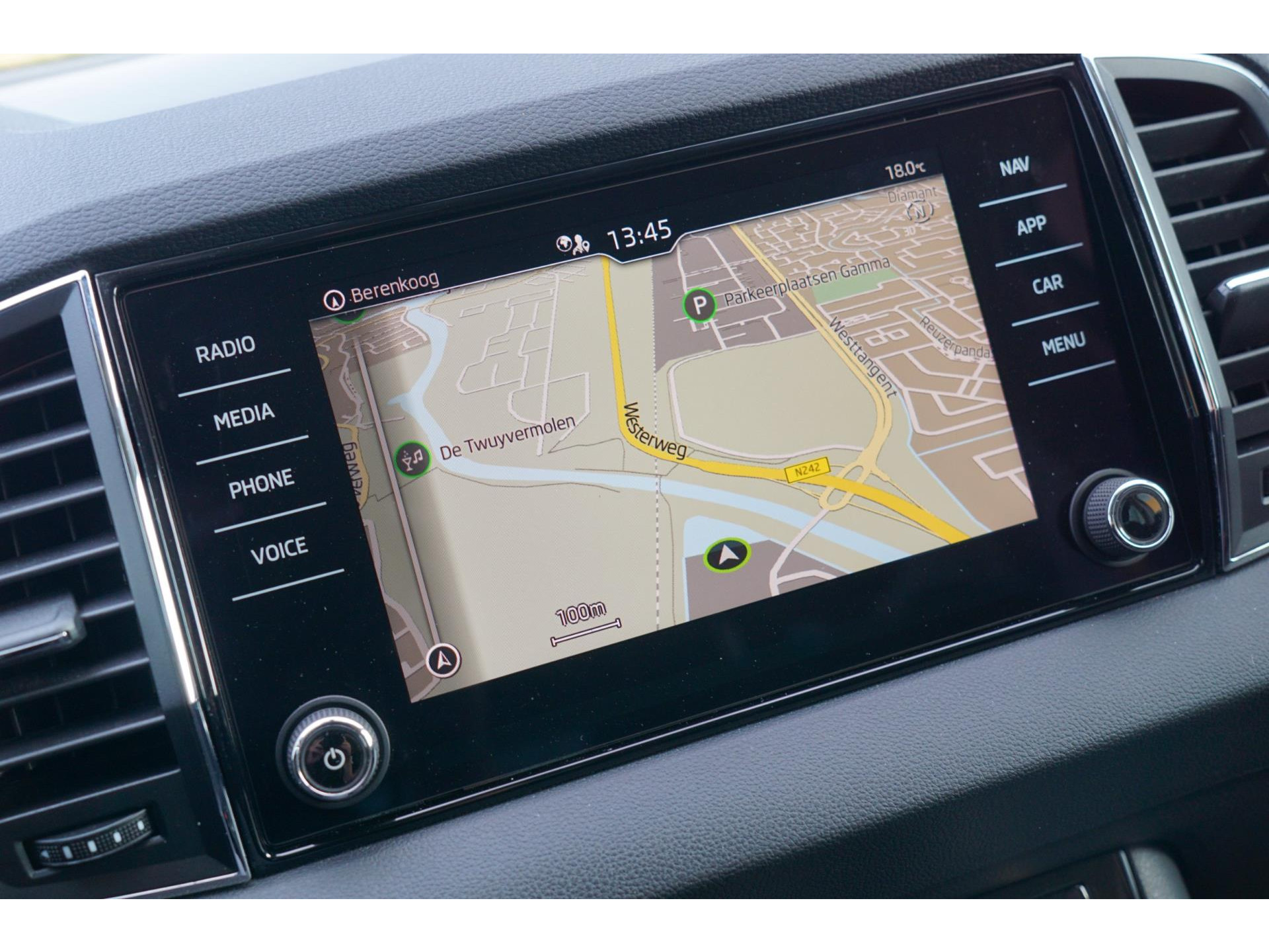 Zo'n lekkere jonge auto heeft natuurlijk leuke extra's, zoals remote services. Met een speciale app maakt u overal verbinding met de auto. Zo kunt u functies activeren en controleren. U kunt het audiosysteem met DAB-ontvangst en het navigatiesysteem met harde schijf bedienen met de knoppen op het stuur of zelf met uw stem. Automatische airconditioning regelt volautomatisch de temperatuur. U kiest de gewenste temperatuur en het systeem doet de rest. Achter het stuur van deze Skoda bent u niet alleen. De auto kijkt als het ware met u mee tijdens de rit. De regensensor schakelt de ruitenwissers in als het nodig is en de automatisch inschakelbare verlichting doet de lichten voor u aan. De cruise control levert een mooie, gelijkmatige koers. Dat rijdt prettig. Wat u ook in deze auto kunt vinden zijn automatisch dimmende binnenspiegel, lederen stuur, centrale deurvergrendeling met afstandsbediening, boordcomputer en lederen versnellingspook.