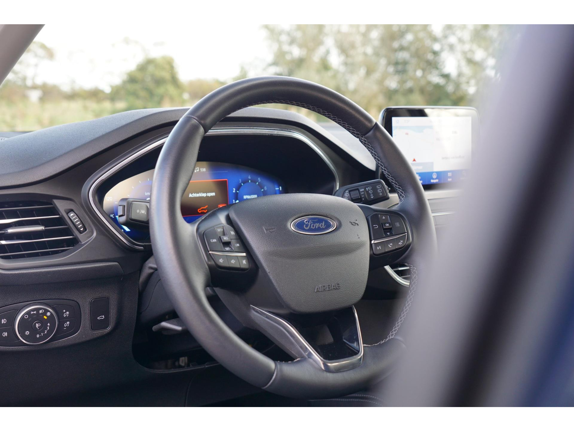 Tijdens de rit wordt u als bestuurder ondersteund door verschillende systemen die de weg en uw omgeving in de gaten houden. Hou de weg in het vizier! De head-up display zorgt dat u de dashboardinfo in beeld geprojecteerd krijgt. Het Lane-keeping systeem registreert permanent of u binnen de lijnen van de rijstrook blijft; dwaalt u onbedoeld af, dan waarschuwt het systeem en corrigeert de koers. Forward collision warning helpt u om kop-staart aanrijdingen te voorkomen. In deze Ford vinden we verder een accident avoidance system, hill hold functie, brake assist en bandenspanningcontrolesysteem.