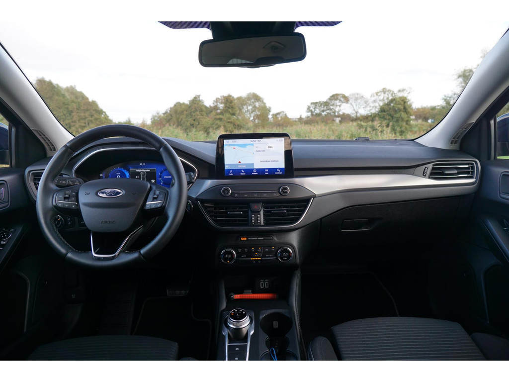 Omdat u nou eenmaal geen ogen in uw achterhoofd heeft, is het altijd lastig om achteruit te rijden zonder brokken te maken. De achteruitrijcamera lost dat probleem op. Adaptive cruise control houdt de ingestelde snelheid vast en houdt afstand tot het voertuig voor u. Veilig en comfortabel rijden wordt nog eens versterkt door Connected Services, zodat u diverse vitale functies van de auto altijd kunt checken in de app. Het high performance audiosysteem produceert krachtige bassen en heldere hoge tonen. Geen onnodige spaghetti van oplaadsnoertjes voor de smartphone: deze Ford Focus Wagon heeft een draadloze oplaadmogelijkheid voor telefoons. Wat u ook in deze auto kunt vinden zijn dashboard met spraakbediening, navigatiesysteem, automatische airconditioning, DAB ontvangst, regensensor en keyless entry.