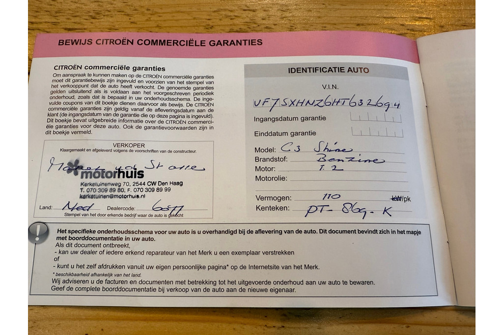- Onderhoudsboekje aanwezig?