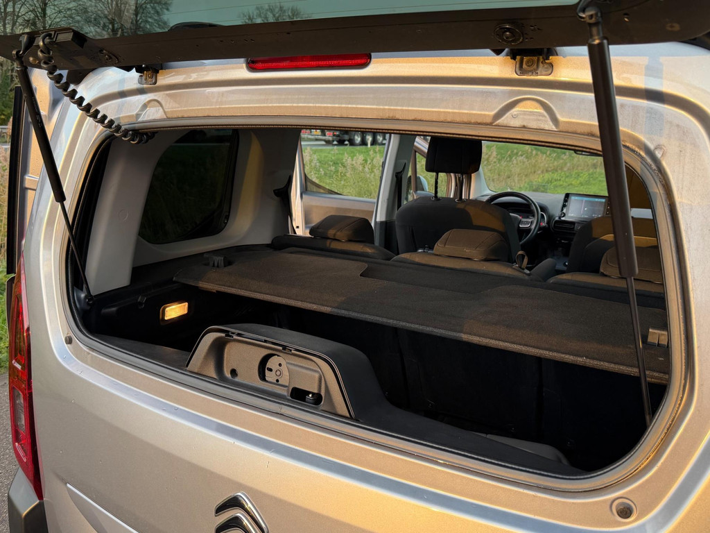 Bij het ontwerpen van de Citroen Berlingo stonden uw comfort en uw veiligheid centraal. De aandrijving van deze Citroen wordt verzorgd door een driecilinder motor en een automatische transmissie. Met een druk op de knop gaat de elektrische achterklep open. Geniet van de lichtinval en het uitzicht van het grote glazen panoramadak. Passagiers nemen achterin veilig plaats via de schuifdeur met ruime opening. Ook LED-dagrijverlichting, donker getint glas achter, in delen neerklapbare achterbank, verstelbare lendensteunen en snelheidsafhankelijke stuurbekrachtiging horen tot de voorzieningen op deze auto.