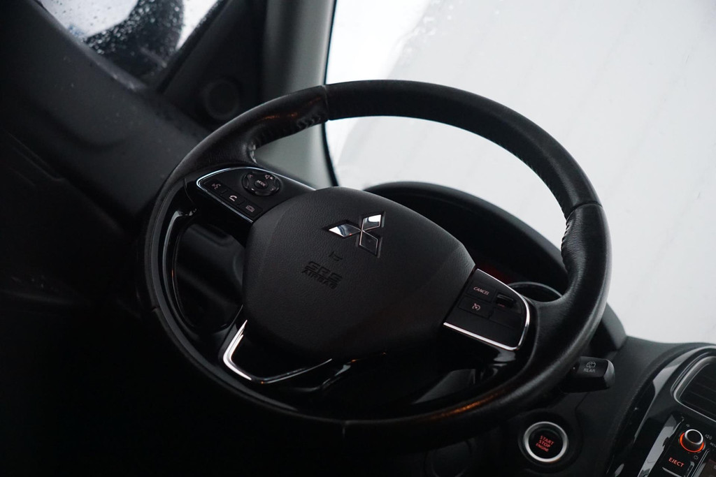 De achteruitrijcamera laat duidelijk zien hoeveel ruimte u nog heeft bij het inparkeren. Nooit meer de weg kwijt: daarvoor zorgt het onboard navigatiesysteem. De sensoren van de achteropkomend verkeer waarschuwing registreren wat er gebeurt in de dode hoeken en achter u. U krijgt meteen een waarschuwing als u een achterligger over het hoofd ziet. Electronic climate control verwarmt of koelt het interieur met een druk op de knop. Het audiosysteem laat zich gemakkelijk bedienen met de audiobediening op het stuurwiel. De Mitsubishi is standaard voorzien van: DAB ontvangst, regensensor, cruise control, keyless entry, automatisch dimmende binnenspiegel en lederen stuur.