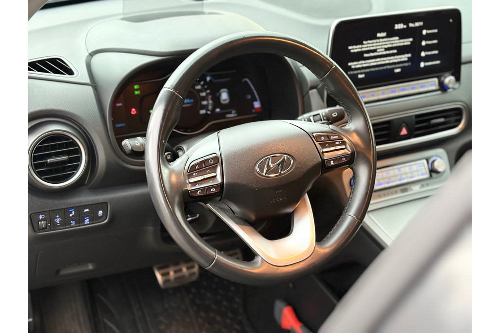 Onstopbaar in opkomst: Hyundai. Vanuit de baanbrekende filosofie: New Thinking. New Possibilities. Ouderwets vakmanschap en natuurlijke materialen komen samen in het lederen interieur. Deze Hyundai Kona legt bestuurder én bijrijder compleet in de watten met de verwarmbare voorstoelen. Bij de rijke uitrusting horen ook 17 inch lichtmetalen velgen, LED-dagrijverlichting, donker getint glas achter, in delen neerklapbare achterbank, LED-achterlichten en verstelbare lendensteunen.
