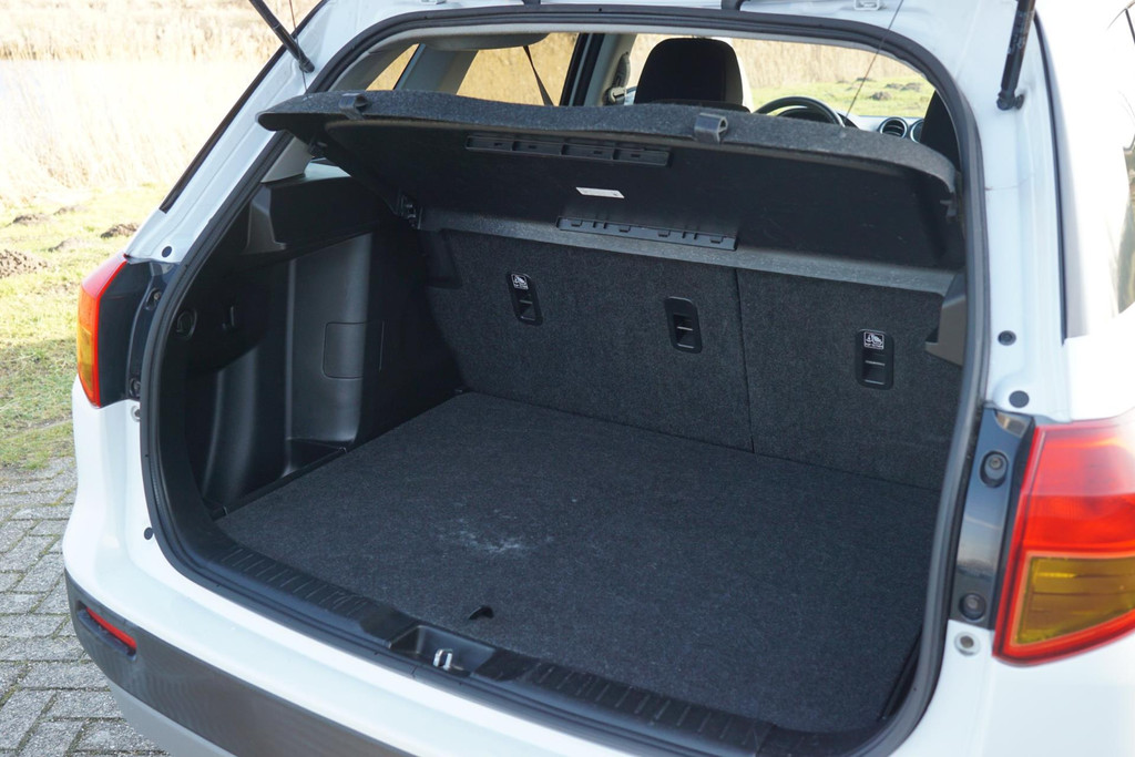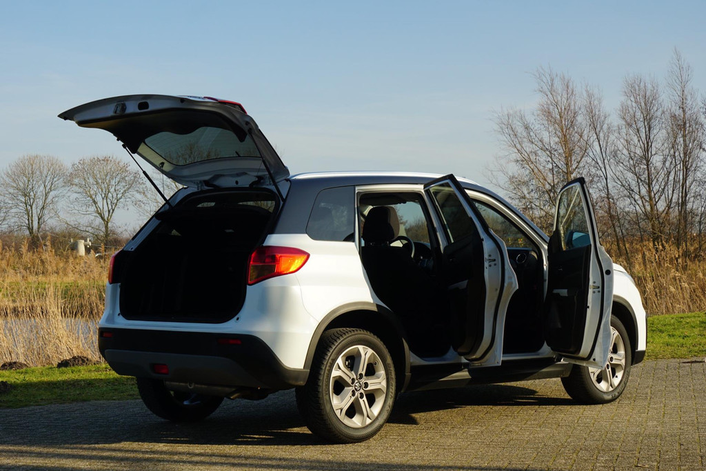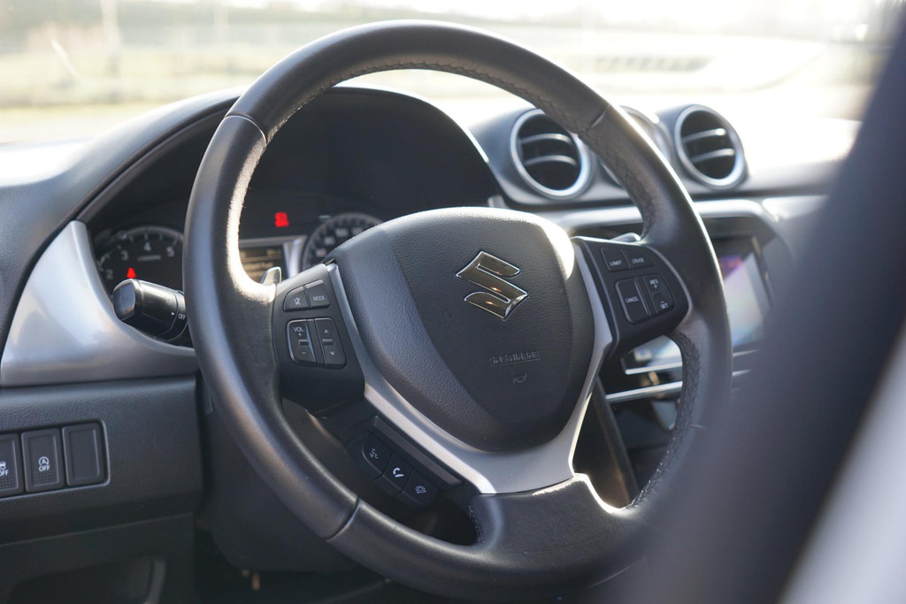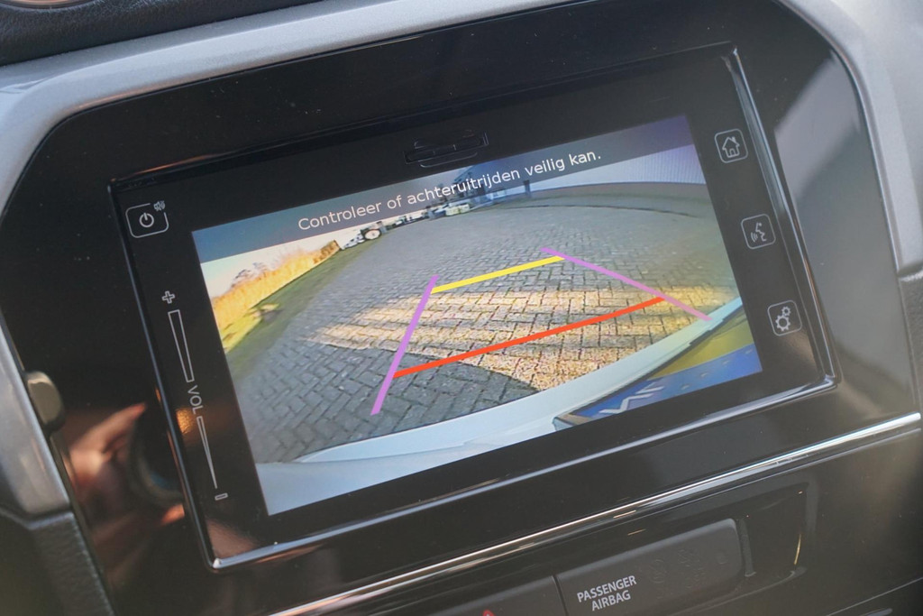 Kommaar-kommaar-kommaar, aldus de achteruitrijcamera. Iedere centimeter vrije ruimte komt haarscherp in beeld. Schadevrij inparkeren maar! Het navigatiesysteem zorgt ervoor dat u snel en ontspannen op uw bestemming aankomt. Het comfort wordt verhoogd door de aanwezige automatische airconditioning. Met de audiobediening op het stuur bedient u het audiosysteem zonder uw ogen van de weg te halen. Deze Suzuki Vitara is voorzien van een regensensor, zodat de ruitenwissers altijd de juiste snelheid hebben. Ook is de Suzuki uitgerust met: cruise control, keyless entry, lederen stuur, isofix-aansluiting en trip computer.