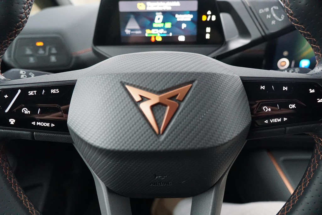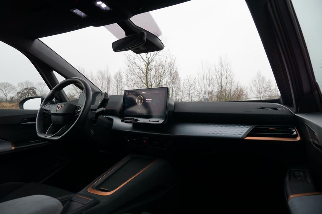 Deze auto nodigt u uit om plaats te nemen achter het sportstuur en onmiddellijk de weg op te gaan. Bestuurder en bijrijder krijgen een warm welkom: deze Cupra Born is voorzien van verwarmbare voorstoelen. Stevig ondersteund door de sportstoelen blijft u bij elke beweging op uw plek. Fijn plusje, zeker in de kille dagen, is het verwarmd stuurwiel. Bij de zeer complete uitrusting van deze auto behoren ook LED koplampen, sportonderstel, extra getint glas, in delen neerklapbare achterbank, LED-achterlichten en verwarmde ruitensproeiers.