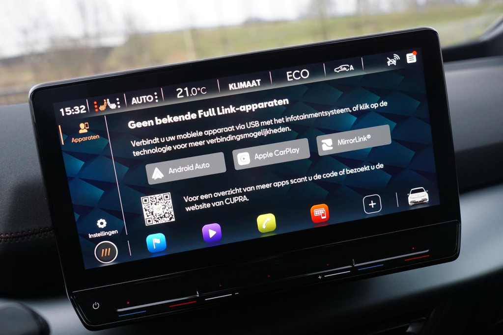 Het digitale dashboard geeft een nauwkeurig en makkelijk overzicht van alle belangrijke functies. Alles vrij achter? De achteruitrijcamera laat het meteen zien. Met adaptive cruise control houdt de auto zelfstandig afstand tot uw voorligger. Een veiligheidsverhogende optie waarmee u comfortabel onderweg bent. Vergeten af te sluiten? Bandenspanning onvoldoende? De speciale app geeft u direct een seintje met behulp van Connected Services. Een goede veiligheidsvoorziening is de spraakbediening en stuurbediening voor belangrijke functies. De auto is natuurlijk voorzien van een navigatiesysteem en het audiosysteem biedt glasheldere geluidskwaliteit dankzij DAB-ontvangst. De Cupra is standaard voorzien van: automatische airconditioning, draadloos opladen, regensensor, keyless entry en automatisch dimmende binnenspiegel.