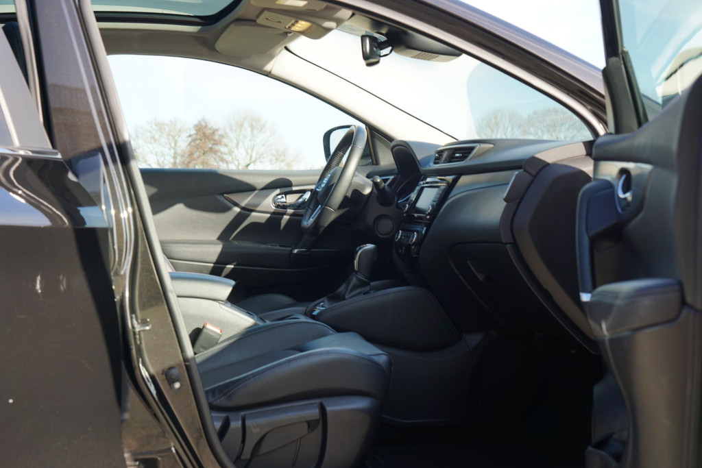 Nissan koppelt vooruitstrevende techniek aan zorgeloos rijplezier. Innovation that excites. Een krachtige motor geeft deze auto zijn sportieve prestaties. Tijdens koude winterdagen verjaagt uw stoelverwarming de kou en maakt het rijden heerlijk comfortabel. Door het glazen panoramadak heeft u een weidse zichthoek en geniet u van licht en een gevoel van ruimte. De uitmonstering van deze auto wordt gecompleteerd door onder meer LED koplampen, halflederen bekleding, extra getint glas, in delen neerklapbare achterbank, LED-achterlichten en verstelbare lendensteunen.