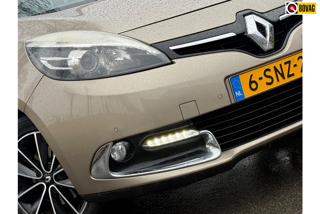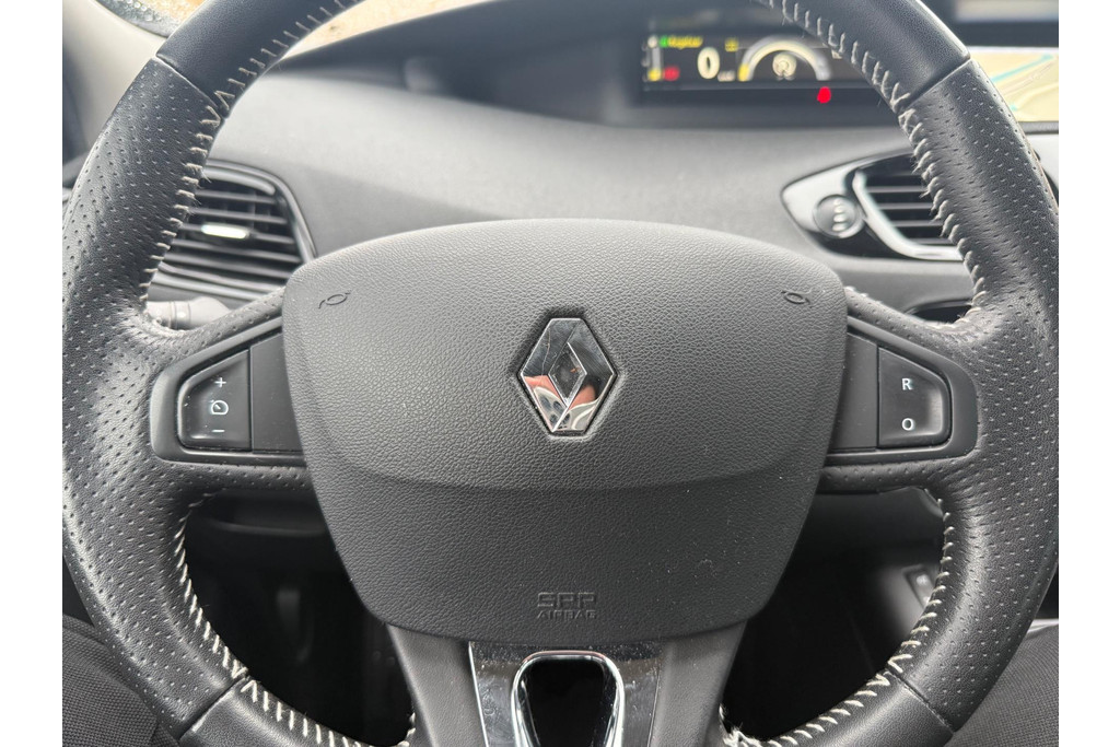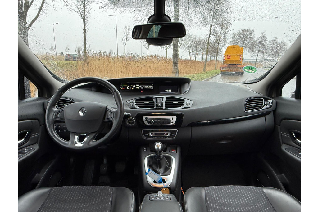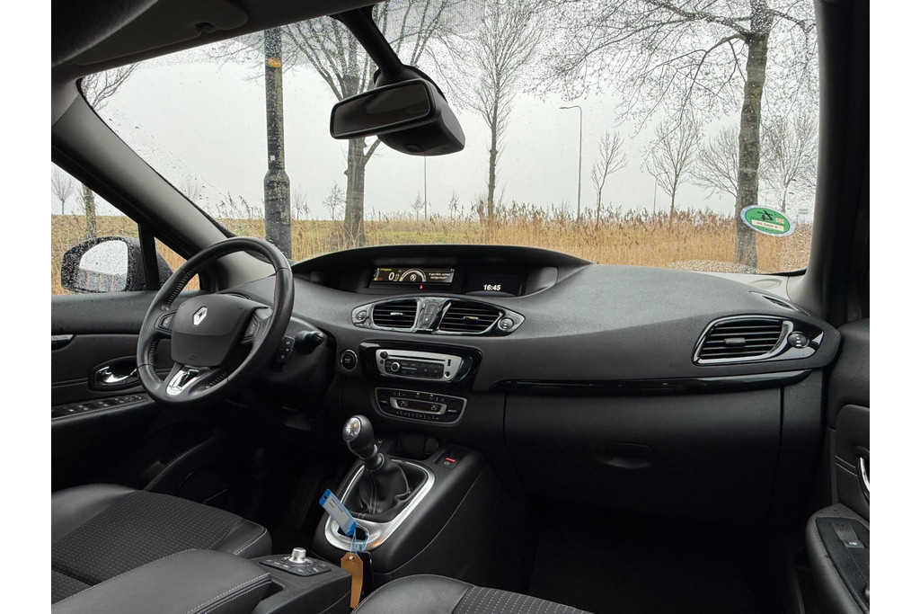 Nooit meer te warm of te koud. De electronic climate control zorgt altijd voor de temperatuur die u kiest. Kom-maar-kom-maar...ho! Zo eenvoudig is het voordeel van parkeersensoren. En zo behulpzaam! Achter het stuur van deze Renault bent u niet alleen. De auto kijkt als het ware met u mee tijdens de rit. De regensensor schakelt de ruitenwissers in als het nodig is en de automatisch inschakelbare verlichting doet de lichten voor u aan. Niet te snel, niet langzaam maar precies goed: laat dat maar over aan de cruise control. Gemak staat voorop bij deze Renault Scénic. Bijvoorbeeld merkbaar aan de keyless entry. U bent in deze Renault ook voorzien van navigatiesysteem, automatisch dimmende binnenspiegel, lederen stuur, boordcomputer en lederen versnellingspook.