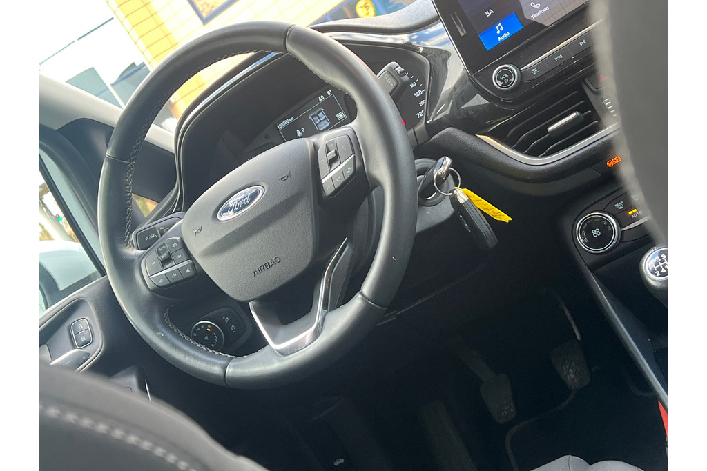 Zoals u mag verwachten van deze Ford Fiesta is hij uitgerust met een reeks aan actieve veiligheidssystemen. Deze Ford Fiesta is ook behulpzaam als het gaat om een rechte koers. Het Lane-keeping systeem signaleert en corrigeert als u onbedoeld de rijstrooklijnen dreigt te overschrijden. Het accident avoidance system helpt aanrijdingen te voorkomen. Met voorzieningen als hill hold functie, brake assist en bandenspanningcontrolesysteem, bent u altijd veilig onderweg.