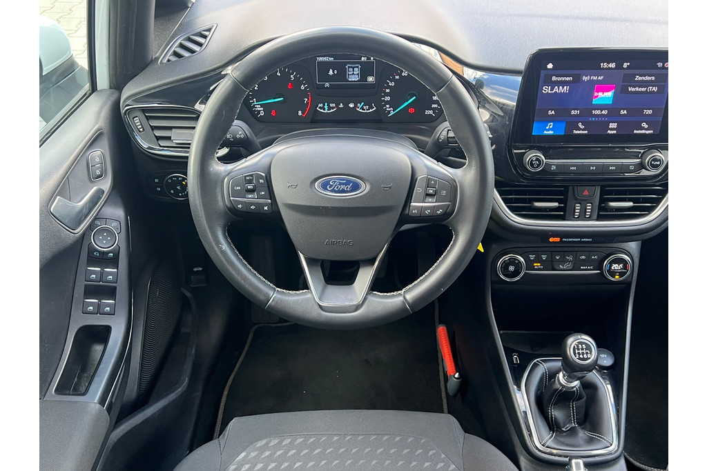 Een scherp stuurgedrag, uitgebreide veiligheidssystemen en moderne technologie. Zoekt u een compacte auto met de rijbeleving van een grote auto, dan is deze Ford Fiesta een uitstekende keuze. De aandrijving van deze Ford wordt verzorgd door een driecilinder motor en een handgeschakelde versnellingsbak. De sportstoelen houden u en uw bijrijder goed op z'n plek tijdens het accelereren en bij het nemen van scherpe bochten. Ook 16 inch lichtmetalen velgen, LED koplampen, in delen neerklapbare achterbank en LED-achterlichten horen tot de voorzieningen op deze auto.
