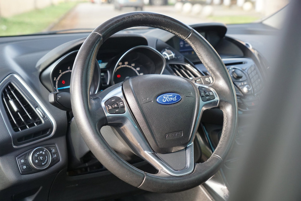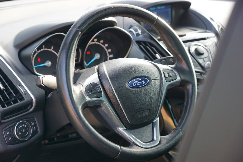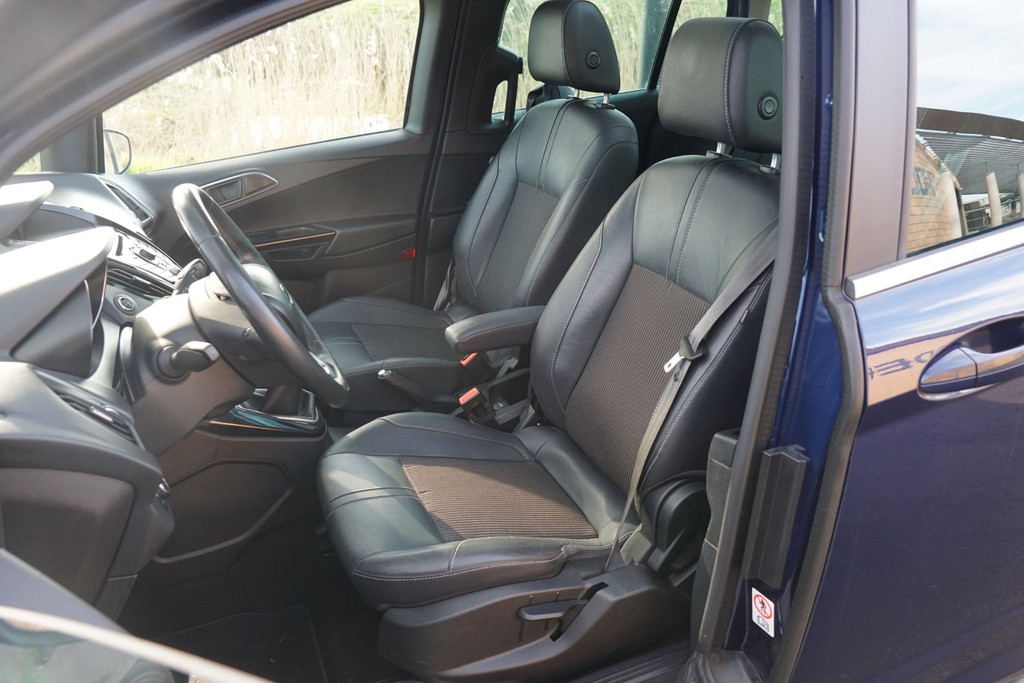 Spraakbediening herkent uw stem en voert opdrachten uit terwijl u beide handen aan het stuur houdt. De automatische airconditioning zorgt voor een prettige binnentemperatuur. Parkeerplekken worden er niet ruimer op. Maar met de aanwezige parkeersensoren krijgt u deze Ford B-Max zonder problemen op z'n plaats. Het drukke verkeer eist onderweg al uw aandacht op. Daarom is het goed dat deze Ford is voorzien van diverse systemen die u assisteren tijdens de rit. Een automatisch inschakelbare verlichting neemt het waar als het donker wordt of gaat schemeren, en schakelt dan automatisch de verlichting in. Op dezelfde manier "ziet" de regensensor de eerste spatjes regen en schakelt dan de ruitenwissers in, en als het harder gaat regenen zet hij de ruitenwissers ook in een snellere stand. Natuurlijk is deze Ford B-Max voorzien van cruise control. Wat u ook in deze auto kunt vinden zijn automatisch dimmende binnenspiegel, lederen stuur, centrale deurvergrendeling met afstandsbediening, boordcomputer en lederen versnellingspook.